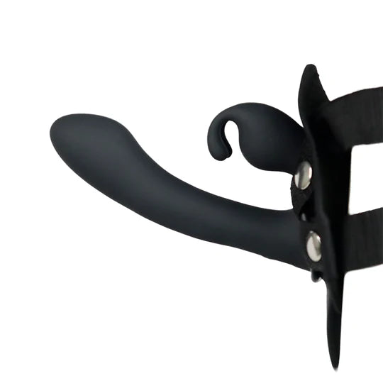 Su material de silicona médica es suave al tacto y seguro para la piel. El diseño curvado del eje principal está pensado para alcanzar con precisión la zona G, mientras que el estimulador externo vibra con potencia sobre el clítoris. Además, se ajusta cómodamente a tu cuerpo con su arnés adaptable.