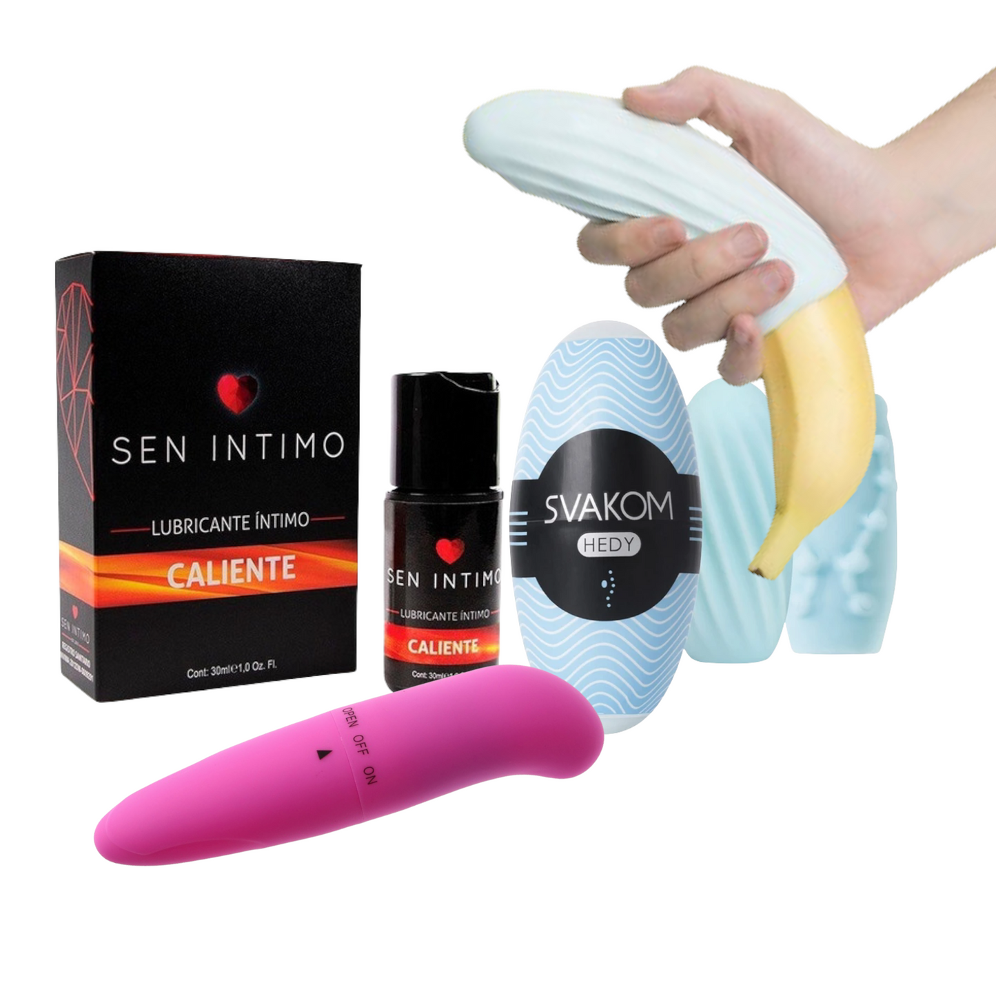 Este kit es perfecto para parejas que quieren experimentar con juegos sexuales nuevos y emocionantes. Incluye un huevo masturbador para hombres, un mini vibrador con funciones de estimulación externa e interna, y un lubricante saborizado y caliente para aumentar la sensación de placer durante los juegos orales y para facilitar la lubricación en la zona íntima.